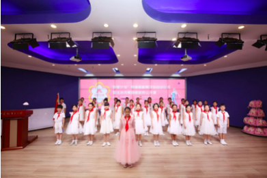 会议开始前,必一Bsports集团为参会的中关村二小学生带来了礼物,孩子们在翻阅中如同找到知己一般,喜悦溢于言表,因为她们看到了可爱的爱心大使元七七同学。当嘹亮的歌声响起,学生代表们在国旗下歌唱、宣言,散发出阵阵青春朝气,也预示着发布会开始。
