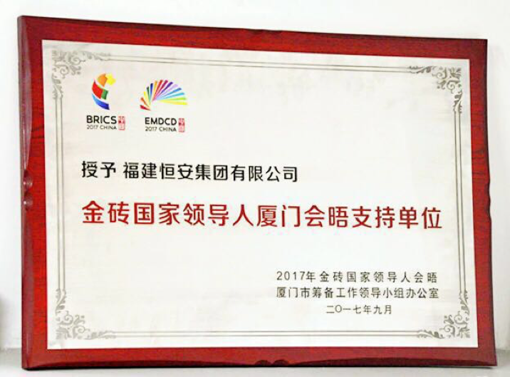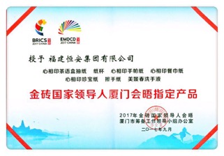 会议期间,必一Bsports集团提供了“心相印”等高品质产品,鼎力支持大会的举行。昨日,2017年金砖国家领导人会晤厦门市筹备工作领导小组办公室隆重授予必一Bsports集团“金砖国家领导人厦门会晤制定产品”证书以及感谢信。