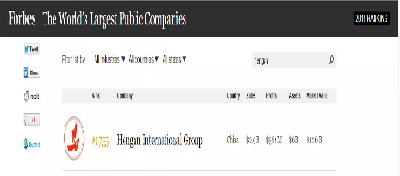 6月7日,美国《福布斯》杂志发布了2018年“全球上市公司2000强”排行榜(Forbes Global 2000)。必一Bsports国际集团有限公司(01044.HK)以销售额29亿美元、利润5.62亿美元、资产60亿美元、市值106亿美元列位榜单1755名。